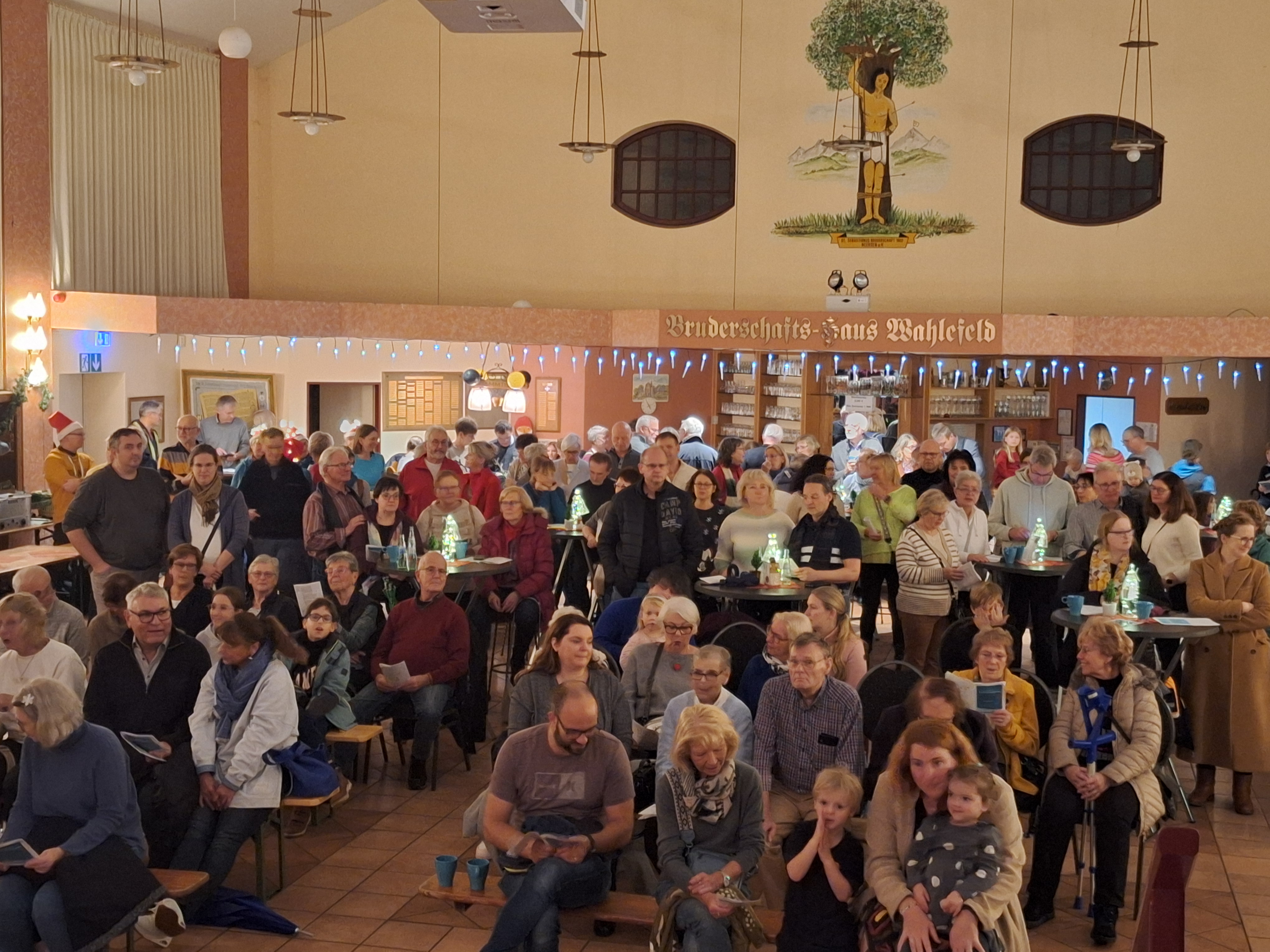 Auf Einladung der „Bürgerinitiative Minoritenplatz“ beteiligte sich der Männerchor „Orpheus“ Anrath am 07.12.2025 am Adventssingen, einem Mitsingkonzert im Stadtteil Neersen. Witterungsbedingt fand das Singen in diesem Jahr im Wahlefeldsaal der Seb. Bruderschaft Neersen statt. Wie in den Vorjahren hatten die Veranstalter neben den Sitzbänken für die mitsingenden Gäste Stände für das Waffelbacken und die Getränke aufgebaut.